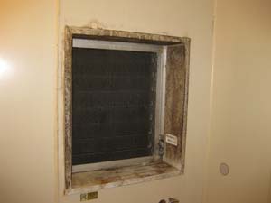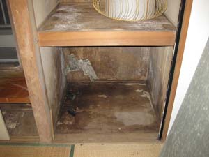 築年数の経過した古いマンションなので老朽化は避けられませんが、室内の換気が十分にされてなかったのでしょうか、壁紙の剥離や押入れ内のカビがひどい状態でした。設備機器も当初のままです。