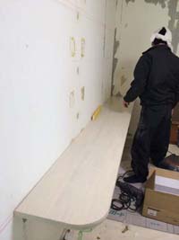 白のカウンターと飾り棚を設置したお部屋は、お気に入りの雑貨を飾るのにぴったりですね。
