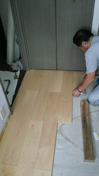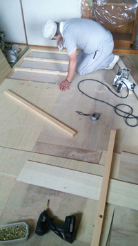 洋室のカーペットは剥がして下地調整、和室は床のレベルの調整を行ってから、フローリングを貼っていきます。