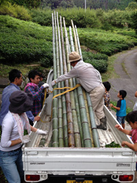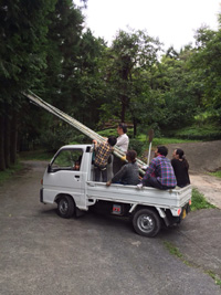 長い竹を軽トラに乗せて山を降りるのですが、木に引っかかったり、枝がばさばさと落ちてきたり、スリル満点です!!