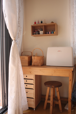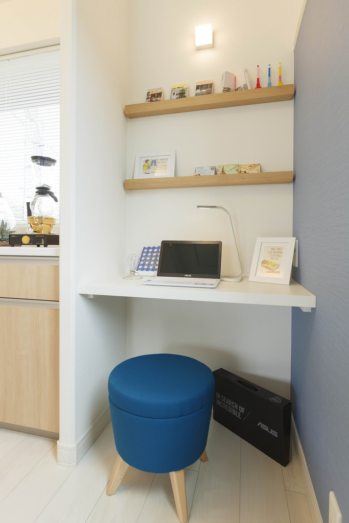このワークスペースは、パソコンスペースやミシンコーナー、趣味コーナーにと、お好みに応じて利用できるスペースです。↓