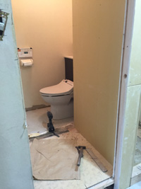 玄関と納戸、洗面所の床の高さが異なるので、床上げ、洗面所を取り付けるための配管の切廻しを行いました。