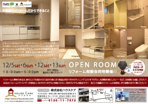 12月5日(土)、6日(日)、12日(土)、13日(土)の4日間、オープンルームを開催します!!