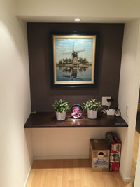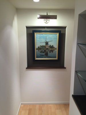 ニッチ上部には、真鍮調の照明を設置。絵にスポットがあたり、これまで以上に絵が映える空間となりました。