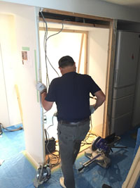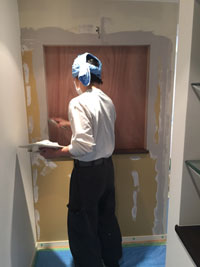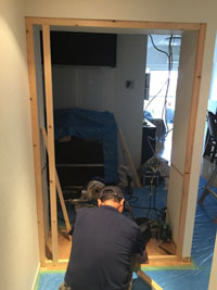 まずは、解体作業。カウンター分の壁をくり抜きます。