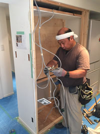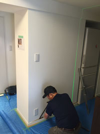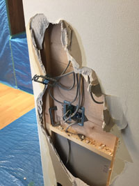 キッチン側にあった電気配線を側面の壁に移行します。