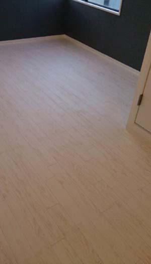 床は、ホワイトウッド柄のフロアタイル。