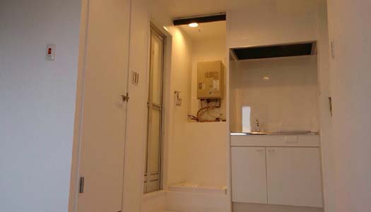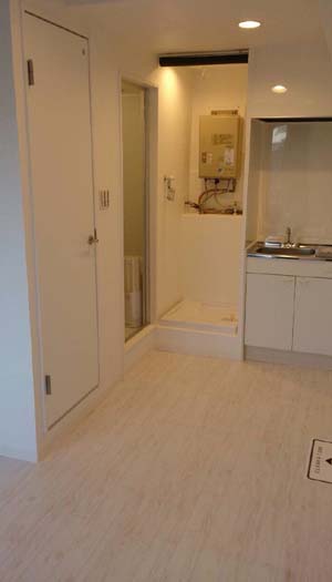 ミニキッチン⇒洗濯機置場の先にバスルームが続きます。
