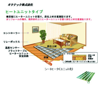 床暖房は、床板にヒーターユニットを貼り、床仕上げ材を直接貼ることのできる電気式の“ヒートユニットタイプ”。