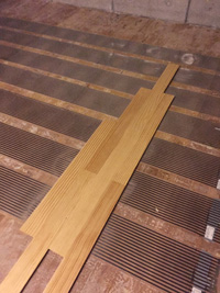 下地材にヒートユニット床材を設置。