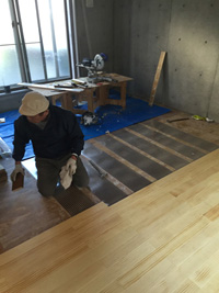 その上に直接、フローリング材を貼ります。