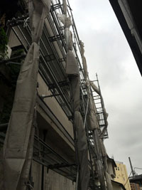 足場を組み、普段は間近かで確認できない箇所をひとつひとつ調べていきます。