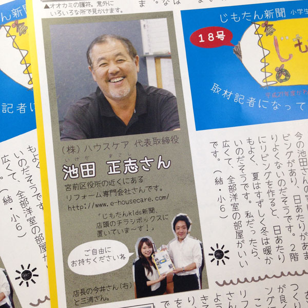 記事は、こどもの目線から見た、聞いたハウスケアの社長が書かれています。