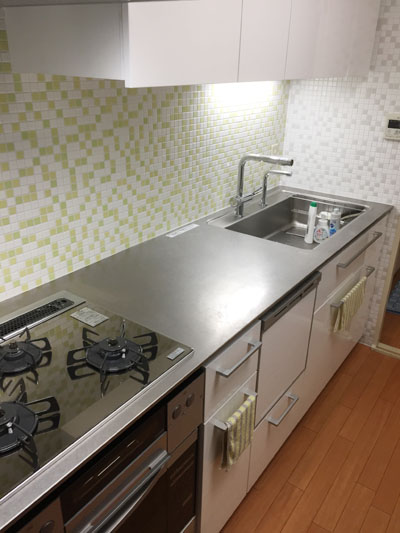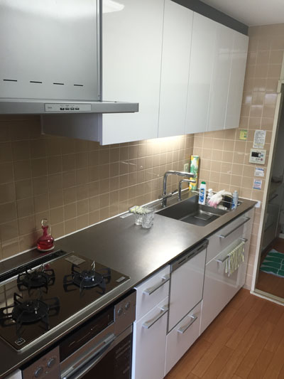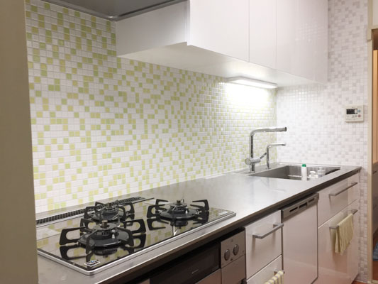 タイル工事 2017年2月15日 最終更新日時 : 2022年11月9日 staff こんにちは、ハウスケアの秦野です。 昨年、キッチンをリフォームされたお客様から、キッチンのタイル貼りの追加工事のご依頼をいただきました。 昨年リフォーム時には、壁面は以前のままのタイルでした。 キッチンが真新しく白になったので、以前のタイルが古めかしいイメージに映ります。 今回は、このタイルに上貼りする方法でタイルを貼りました。 施工後がこちら ホワイトのキッチンパネルに映える白地のモザイクタイルで、全体が明るい印象になりました。 キッチンに立つのが楽しくなりそうな空間ですね。
