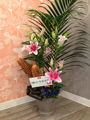 お祝いに、加藤花飾店さんでお花のアレンジを作ってもらいました。
