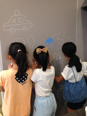 じもたんkidsのこどもたちが、かわいい絵を壁に描いてましたよ。