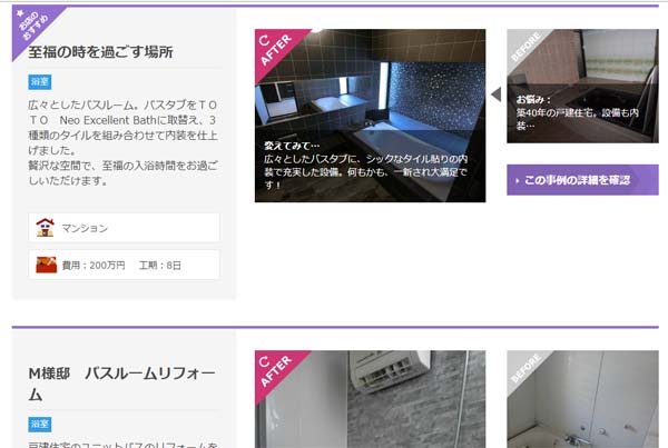 メーカーさんの施工会社紹介ページにも、同様に施工事例をアップしていただいてきました。