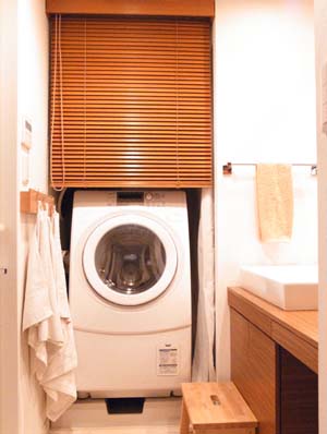 そんなごちゃごちゃしがちな洗濯機の上をすっきり見せるのにおすすめなのが、木製ブラインドやロールスクリーンの取り付けです。