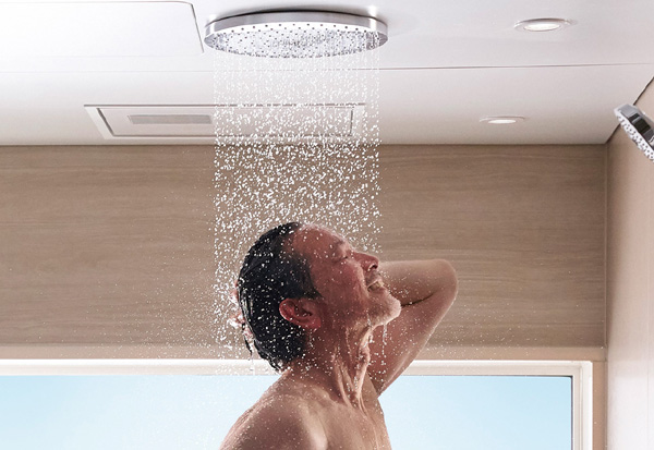 一気に全身を覆い爽快な気分に。エアイン技術で、少ない水量でもたっぷりの浴び心地のシャワーを実現しました。