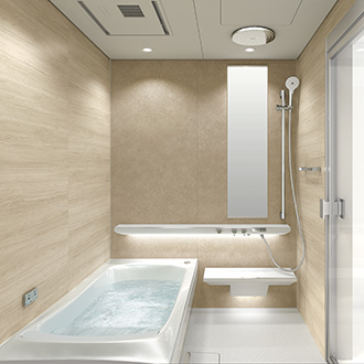 暖房換気扇を浴室に標準掲載。洗面所暖房器とのセット使いで入浴前から、ずっと温かで快適です。