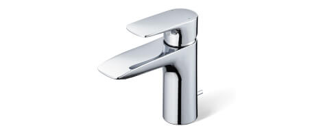 「陶器製洗面ボウル(ベッセル式)」と相性がよく、洗練されたデザインの水栓を2タイプから選べます。