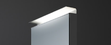 鏡の間口いっぱいに設置された「ワイドLED照明」。広く明るく照らし、LEDなので省エネ、長寿命です。