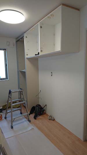 この2つ並びですと、右側の壁が30cmくらい余ってしまい、スペースがもったいないですね。