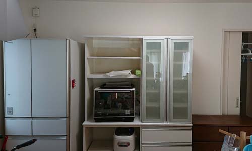 冷蔵庫と既成の食器棚をはじめに組み合わせてお使いだったのでしょう。