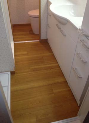 フローリング調のフロアタイル。洗面所の雰囲気が変わりますね。