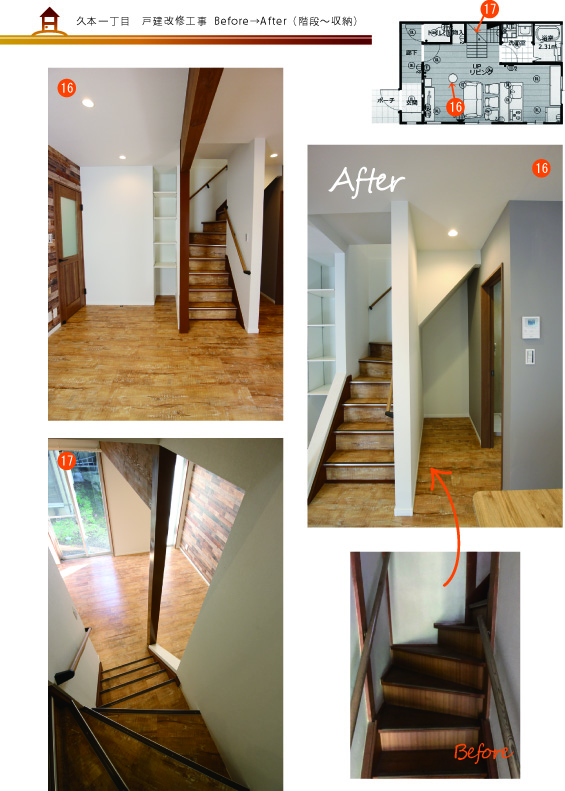階段はそのままに、内装仕上げ材で改修しました。