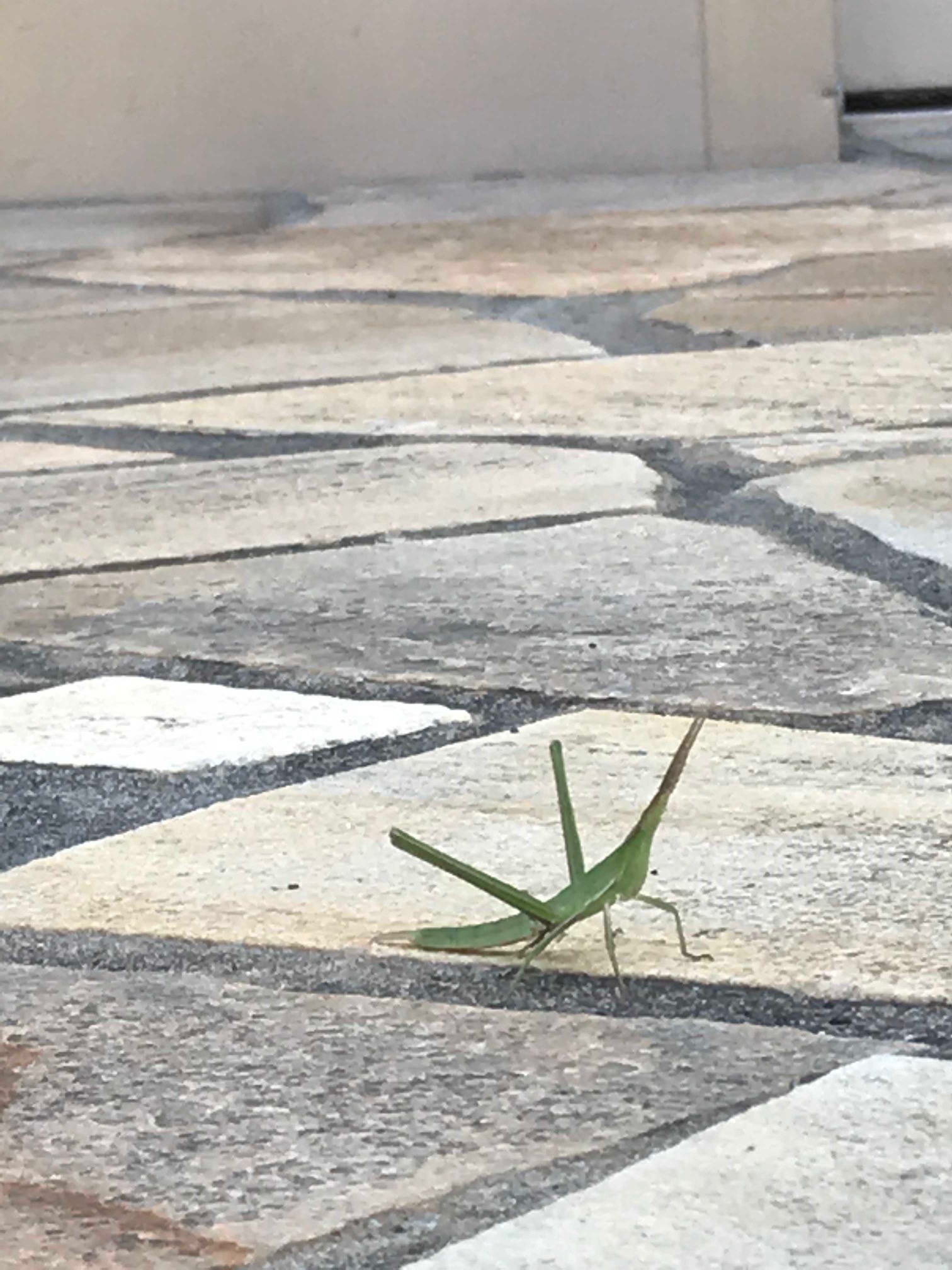 突然の暑さに耐えられなくなったのか、どこからかバッタが店内に入ってきました。