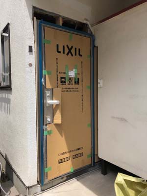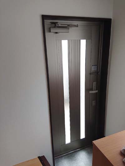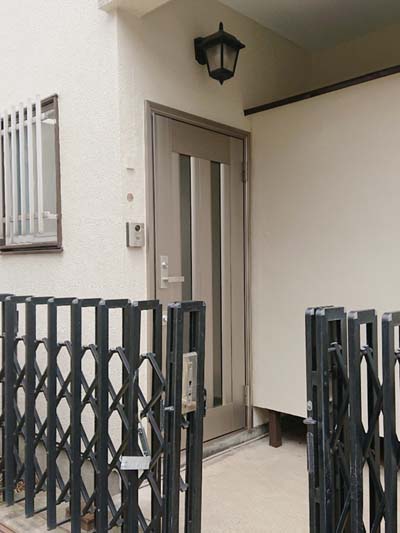 玄関扉はリクシルのリシェル。カバー工法なので、一日で玄関扉をリフォームすることができます。