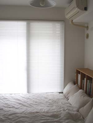 黒いサッシの内側が白いダイノックシートを貼った窓枠です。壁と一体化して、すっきりとした印象に仕上がります。