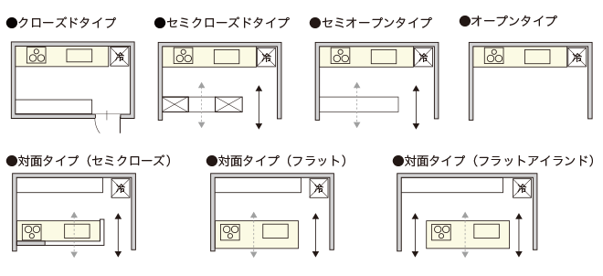 それぞれに特徴があり、キッチンに色々なレイアウトがあります。