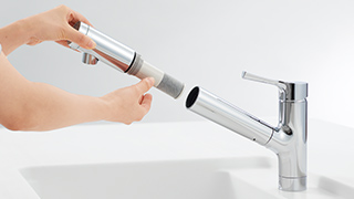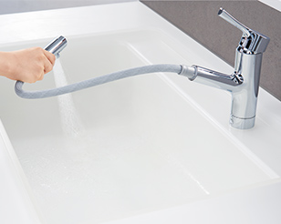 ※ハンドシャワータイプ ⇒ シンクのすみずみまできれいに洗い流せるので、無理なく、効率よく水を使えます。