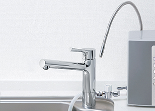 ※浄水機能付水洗(浄水カートリッチ内蔵形) ⇒ 飲用に、お料理に、おいしい水をたっぷりと。